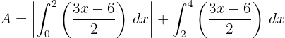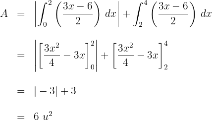 2El área solicitada viene dada por la integral de la región bajo el eje y la región por encima de dicho eje. La región bajo el eje tiene área negativa, por lo que consideramos su valor absoluto