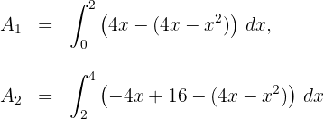 4El área solicitada viene dada por la integral de la diferencia de ambas curvas