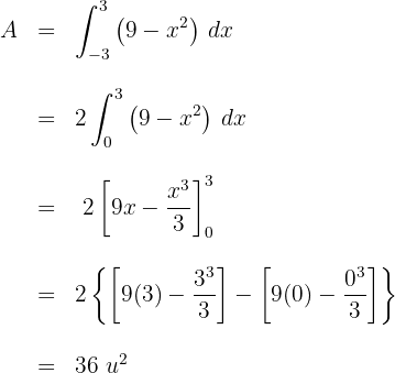 Como la parábola es simétrica respecto al eje , el área será igual al doble del área comprendida entre
