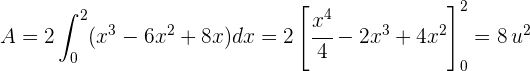 Calcular el área de las regiones del plano limitada por la curva f(x) = x³ − 6x² + 8x y el eje OX.