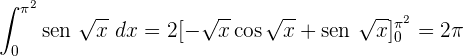 (notemos que en integrales definidas no es necesaria la constante de integración). De esta manera, obtenemos,