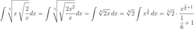 1 Aplicamos propiedades de los radicales para dejar una sola , convertimos a potencia e integramos