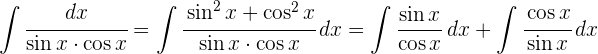 1 Separamos la función en dos fracciones y aplicamos identidades trigonométricas