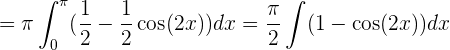 Aplicando la fórmula para calcular el volumen, además de utilizar la identidad trigonométrica     y que en este intervalo el coseno tiene área negativa
