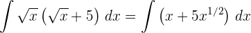 1Realizamos la multiplicación en el integrando, escribiendo los términos en forma de potencia