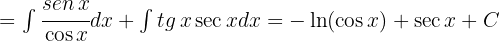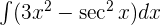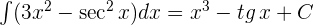 Aplicando la integral inmediata de potencias y de la función trigonométrica secante tenemos: