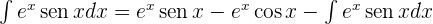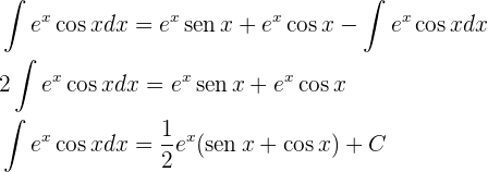Si al integrar por partes aparece en el segundo miembro la misma integral que hay que calcular, entonces procederemos a resolver como si fuera una ecuación.