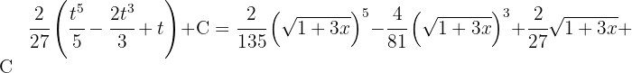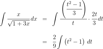 5  En las funciones racionales de radicales con distintos índices, de un mismo radicando lineal  , el cambio de variable es
