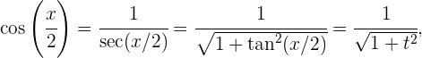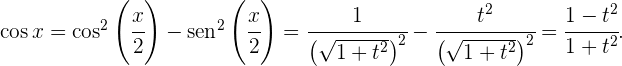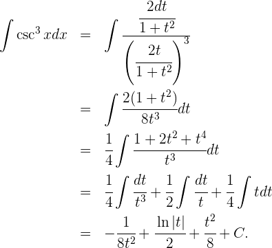 Claramente el integrando no es una función racional par, entonces hacemos la sustitución y aplicamos las identidades de arriba. Así, tenemos que