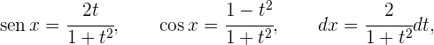 Resumiendo, si un integrando es una expresión racional no par en senos y cosenos, entonces la sustitución