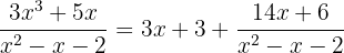 1 Notemos que como el grado del denominador no es mayor que el del numerador, entonces primero debemos realizar la división para poder transformar esta fracción en la suma de un polinomio con otra fracción que si tenga un denominador con grado mayor que el numerador. Si realizamos la división de los polinomios dentro de la integral tenemos que