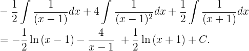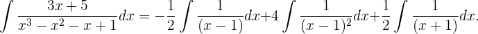 Esta integral se descompone en la suma de integrales de tipo logarítmico y de trigonométricas inversas.