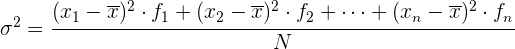 Calculamos la sumatoria de de los productos de desviaciones respecto a la media por sus frecuencias absolutas correspondientes