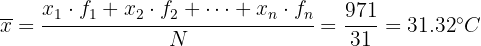 En primer lugar dividimos 31/2 y obtenemos 15.5, es decir, si colocamos las temperaturas en orden, la mediana seria la que ocupe el lugar 16.
