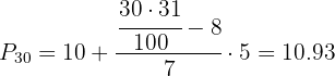 Buscamos el intervalo donde se encuentra el percentil 30, multiplicando 30 por