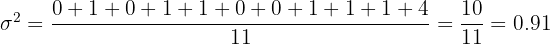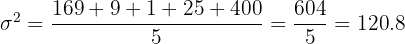 Determinamos la desviación típica al cuadrado sustituyendo en la fórmula presentada anteriormente,