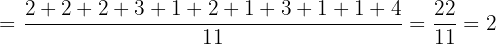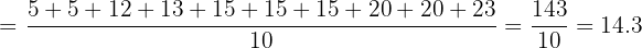 En la tabla anterior, en la última fila se encuentran las suma totales de las columnas. Esto quiere decir que 26 representa la cardinalidad del conjunto de datos y 127 es la suma del total de datos. Teniendo esto en cuenta, calculamos el promedio de la siguiente manera.