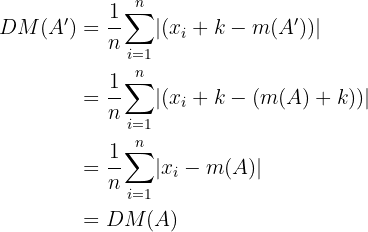 Es decir, la desviación media es invariante bajo traslaciones del conjunto.