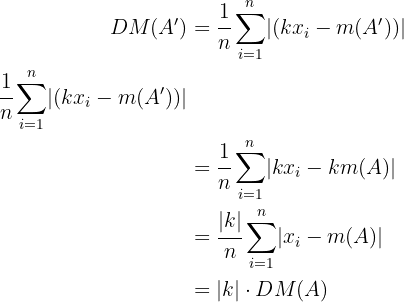 Es decir, la desviación media de una dilatación de conjunto tiene el efecto de multiplicar por el valor absoluto del coeficiente de dilatación.