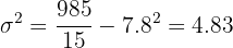 | [15, 20) | 17.5 | 5 | 87.5 | 1531.25 |