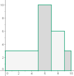 En el eje abscisas se construyen unos rectángulos que tienen por base la amplitud del intervalo, y por altura, la frecuencia absoluta de cada intervalo.