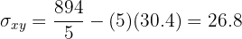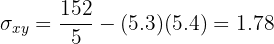 Calculamos la covarianza, las varianza y las desviaciones estándares