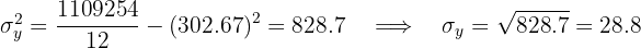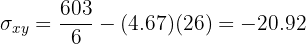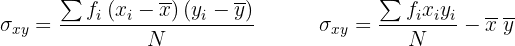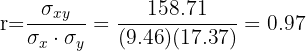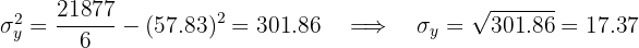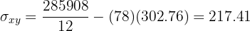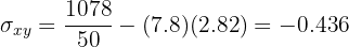 Ahora calculamos los promedios, la covarianza, y las desviaciones estándar: