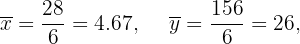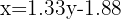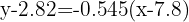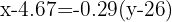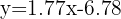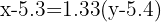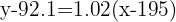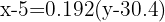 y – 5 = (5.92 / 6) * (x – 6) >>> y = 0.987 * x – 0.922
