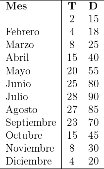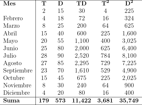 La siguiente tabla muestra la relación que hay entre la temperatura promedio mensual (T) en