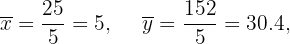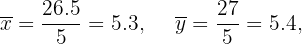 y como ya sabemos la media de y (5) y el coeficiente de x (0.987)