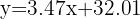 Ya revise el ejercicio y la ecuación es y=0.53x+302.91
