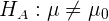 Observemos que la hipótesis nula es una igualdad. Por lo tanto, rechazaremos la hipótesis nula cuando la media muestral sea mucho mayor o mucho menor a la hipotética.