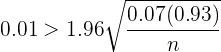 que en este caso deseamos que sea menor a 0.01. Además, para
