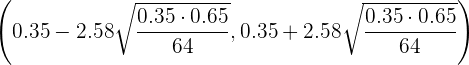 Si en el ejercicio anterior, el tamaño de la muestra es de 64 individuos, y el porcentaje de individuos daltónicos en la muestra es del 35%, determina, usando un nivel de significación del 1%, el correspondiente intervalo de confianza para la proporción de daltónicos de la población.
