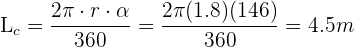 Los brazos de un columpio miden 1.8 m de largo y pueden describir como máximo un ángulo de 146°. Calcula el espacio recorrido por el asiento del columpio cuando el ángulo descrito en su balanceo es el máximo.