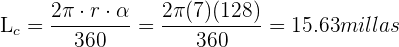Un faro barre con su luz un ángulo plano de 128°. Si el alcance máximo del faro es de 7 millas, ¿cuál es la longitud máxima en metros del arco correspondiente?
