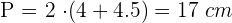 Usando las fórmulas, calculamos primero el perímetro: