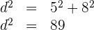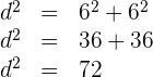 1 La diagonal del cuadrado forma un triángulo rectángulo con los lados del cuadrado, por lo que podemos aplicar el teorema de Pitágoras