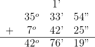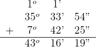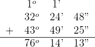 Primero sumamos de forma regular, se colocan los grados debajo de los grados, los minutos debajo de los minutos y los segundos debajo de los segundos; y se suman