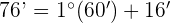 El cociente son los grados y el resto, multiplicando por 60, los minutos