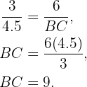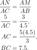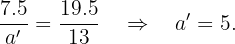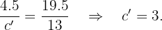 Primeramente calculamos la hipotenusa del primer triángulo rectángulo utilizando Pitágoras y luego calculamos los catetos del segundo a partir de la relación de semejanza.