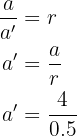 Podemos tomar cualquier par de lados homólogos, por ejemplo, los lados b y b', y calculamos su razón