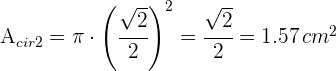 2Necesitamos conocer los radios de los círculos; para esto observamos que el diámetro de la circunferencia circunscrita es igual a la diagonal del cuadrado