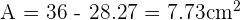 Área circulo del cuadrado y después proceder restando el área del circulo para encontrar el área sombreada: