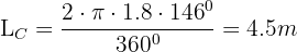 y aplicamos la fórmula de Longitud de un arco de circunferencia