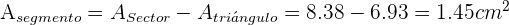 Área del segmento circular AB = Área del sector circular AOB − Área del triángulo AOB