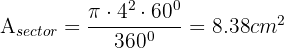 Sobre un círculo de 4 cm se traza un ángulo central de 60°. Calcular el área del segmento circular comprendido entre la cuerda que une los extremos de los dos radios y su arco correspondiente