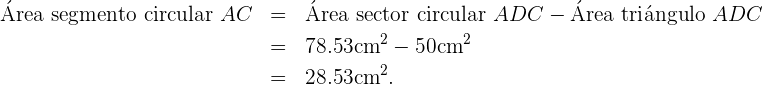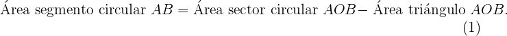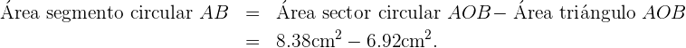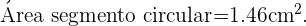 . Calcular el área del segmento circular comprendido entre la cuerda que une a los extremos de los dos radios y su arco correspondiente.