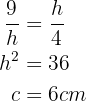 4 En un triángulo rectángulo, las proyecciones de los catetos sobre la hipotenusa miden 4 y 9 centímetros. Calcular la altura relativa a la hipotenusa.