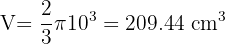 Calcular el volumen de una semiesfera de 10 cm de radio.